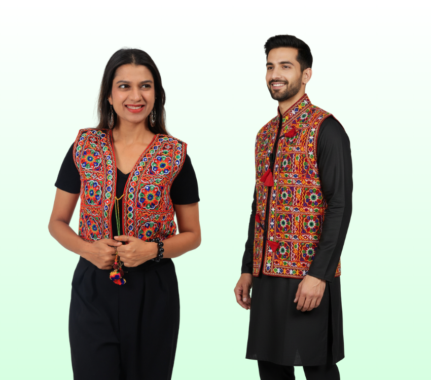 Handcrafted Gujarati Mirror Work Jacket For Couple-Navratri With Your Love